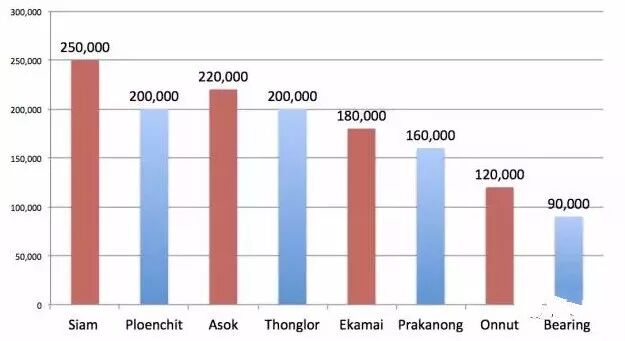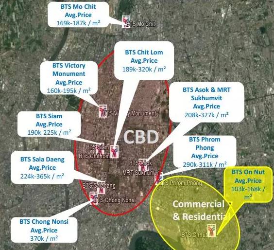 曼谷輕軌站距離BTS Ekamai-Thonglor(曼谷著名小資生活區,高端餐飲娛樂住宅區,著名的日本人及地區)餐廳聚集地)僅相隔一個站,而Onnut區的房價僅是Ekamai-通洛區的一半甚至三分之一。