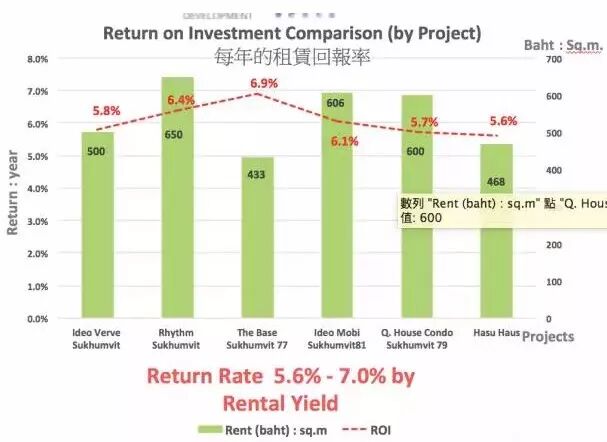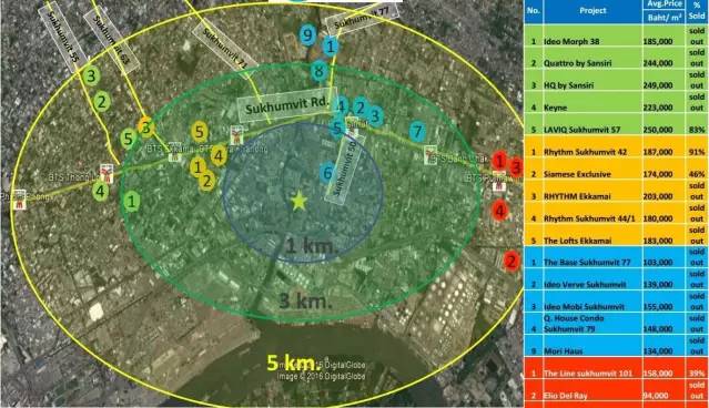 為什麼呢?都是很多年前終點站惹的,因為一提到On nut就好像已經出來很遠了,所以房價也就跌出了幾個街區,不過Onnut現在總算為自己正名了,擺脫了軌道交通終點站;依托政府規劃輕軌線往外延伸14個BTS站和健全的生活設施(兩個大超市)以及人口密度,On nut的房價也在緩步上升,從均價6-7萬泰銖每平米到現在均價10萬-11萬每平米,大概也就用了3 - 4年的時間,增長率十分可觀。